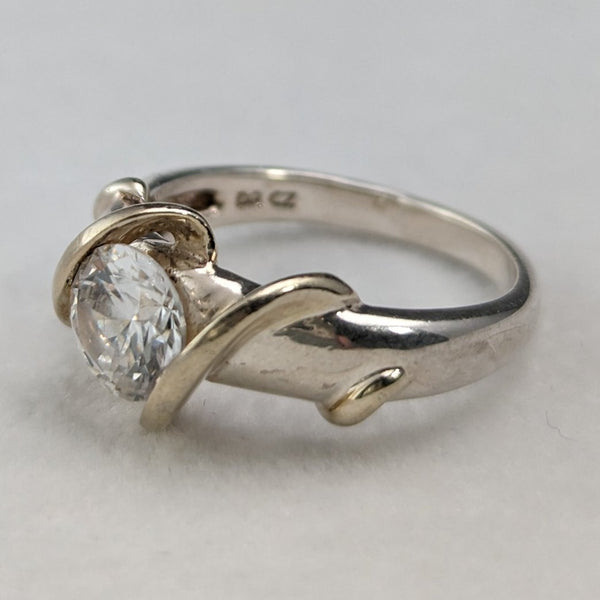 英国ヴィンテージのリングをご紹介いたします。スターリングシルバー製のリングにキュービックジルコニアの組み合わせの指輪です。石の台座部分がからまる蔦のようなデザインとなっており、この部分はゴールドメッキされています。この素敵なジュエリーが あなたの毎日に彩りを与えてくれることを願っています!【コンディション】外観:★★★★☆ 目立った傷や汚れのない美品 ・経年の摩耗ははありますが目立つ傷もなく美しい状態です。・蔦のような部分のゴールドメッキは少し薄くなっています。・リングの内側に「925」の刻印があります・写真に写っている新品のケースに入れた状態でお届けします。※古いものですので経年による細かな傷や汚れはございます。 写真をよくご確認いただいたうえで購入をお願い致します。【詳細】・メーカー 不明・製造年 不明(ヴィンテージ)・材質 リング:スターリングシルバー(一部ゴールドメッキ)    ストーン:ジルコニア・サイズ 内寸:約16.3mm(11号)・重量 3.3g ※不明な点がありましたらなんでもお気軽にご質問ください。