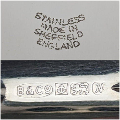 ・The blade has a hallmark that guarantees pure silver by the British Assay Laboratory.