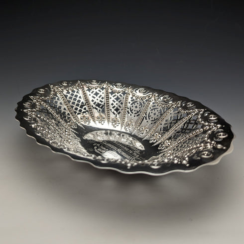 1894 British Antique Sterling Silver Earring Decoration Bowl/Dish 232g Martin Hall