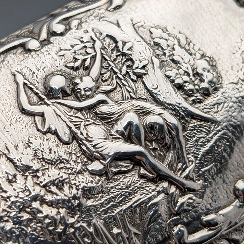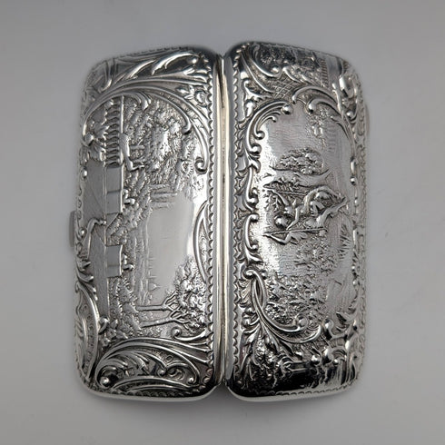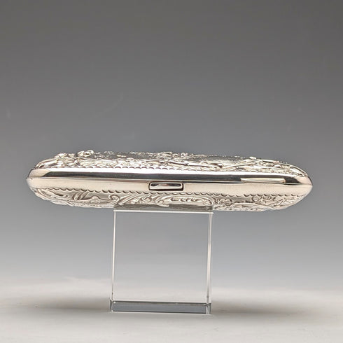 1899 British antique sterling silver cigarette case with fine relief decoration, 102g, Henry Matthews