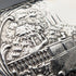 Both sides are decorated with elaborate hand-carved relief carvings, with different designs of "Lovers on a swing in the woods" on one side and "A country house surrounded by woods" on the other.