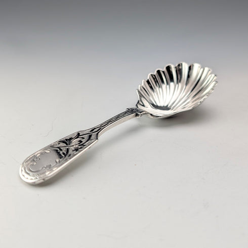 We would like to introduce you to an antique British sterling silver tea caddy spoon.