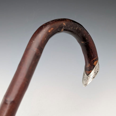 1899 British antique brown shaft, curved handle, pure silver decoration, walking stick, 85cm