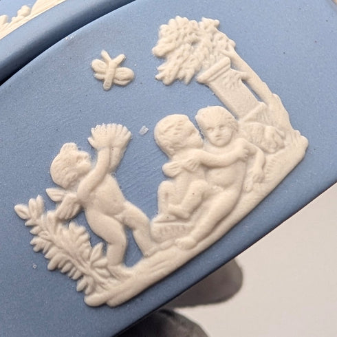 British Vintage Wedgwood Jasperware Box Pair, Pale Blue