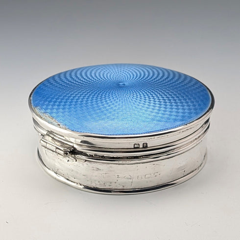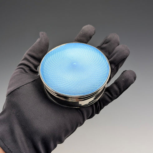 1926 British Antique Blue Guilloche Enamel Sterling Silver Jewelry Box 120g
