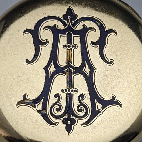 裏蓋にはコバルトのエナメルで美しいモノグラムが彫刻されています。