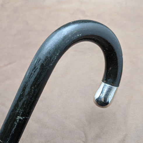 彫刻の入った純銀装飾がワンポイントとなった曲がりハンドルのステッキです。