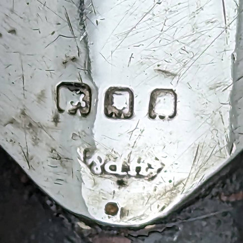・ハンドル先端の銀装飾には英国試金鑑定所による純銀を保証するホールマークが残っています。