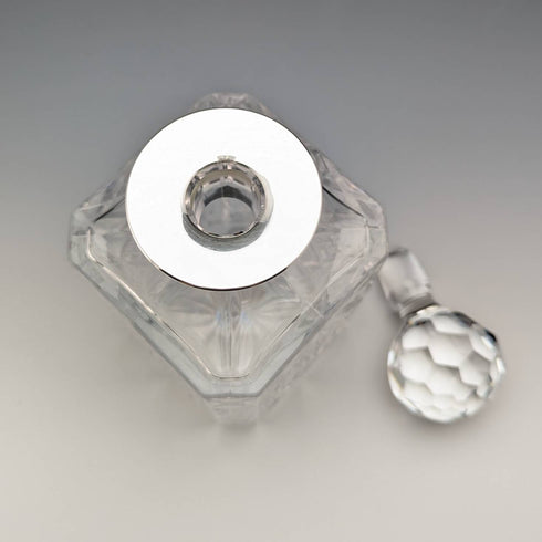 1979年 英国ヴィンテージ カットガラス 角型デキャンタ 純銀装飾 JA Campbell