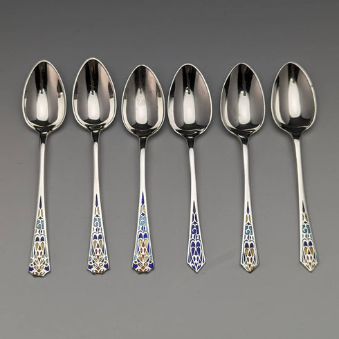 1930年代 英国ヴィンテージ 純銀製 エナメル装飾 ティースプーン6本セット