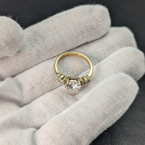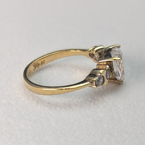 英国ヴィンテージジュエリー ハートシェイプジルコニア ギルト純銀リング 指輪