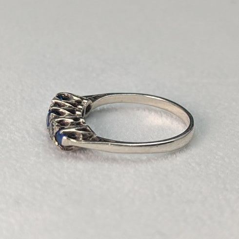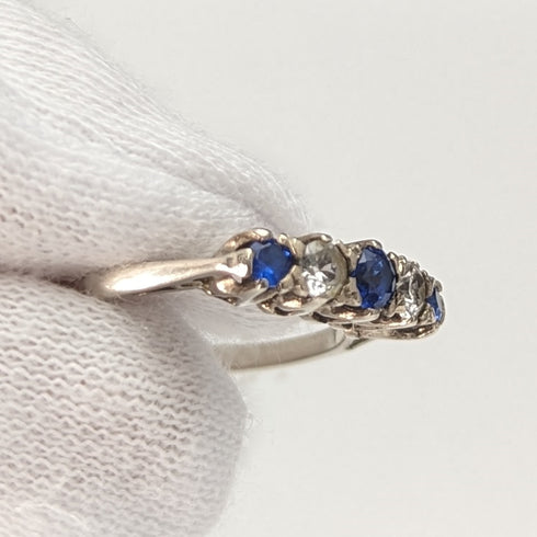 英国ヴィンテージジュエリー ブルー&ホワイトストーン 純銀リング 指輪