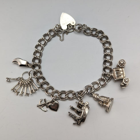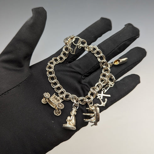 1979年 英国ヴィンテージ 純銀製 チャームブレスレット 27g