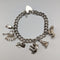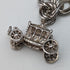 反戦や馬車など6個ほどのシルバー製のチャームがチェーンに取り付けられたブレスレットです。