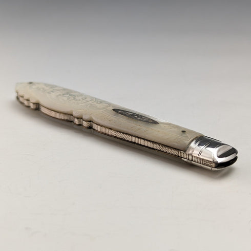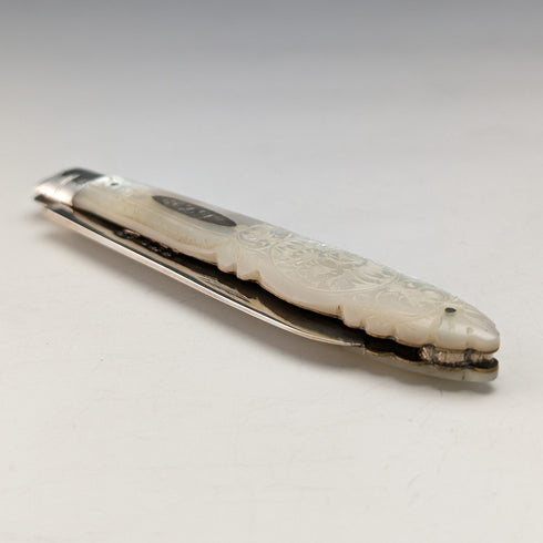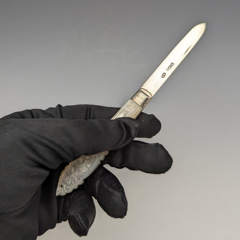 1893年 英国アンティーク 白蝶貝ハンドル 純銀ブレード ペンナイフ ケース入 Arthur Worral Staniforth
