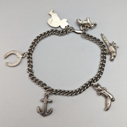英国ヴィンテージ 純銀製 チャームブレスレット 23g