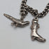 6個の様々な形状のシルバー製のチャームがチェーンに取り付けられています。