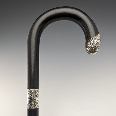 1921年 英国アンティーク 紳士用ステッキ 純銀装飾 ブラックシャフト 92cm