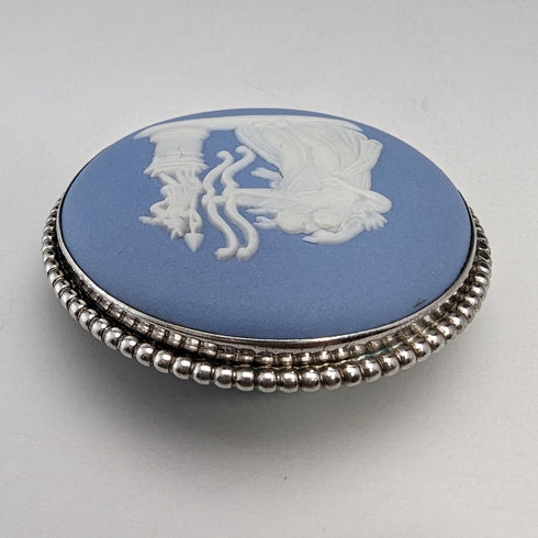 1958年 英国ヴィンテージ ウェッジウッド 純銀&ジャスパーウェア 丸型ブローチ