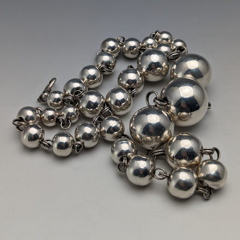 純銀製の大小のビーズが組み合わされた大ぶりのネックレスです。