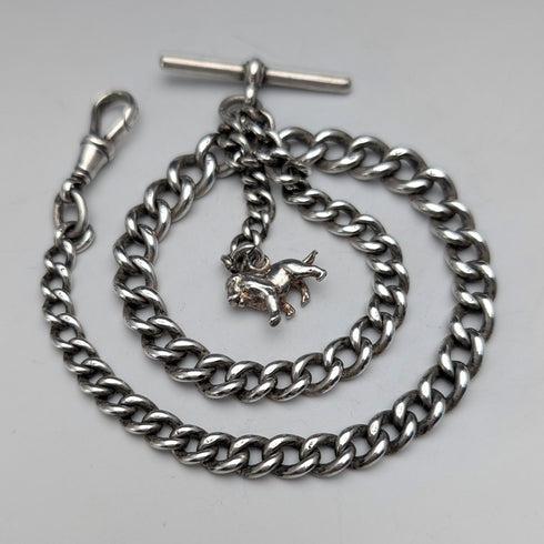 1900年頃 英国アンティーク 純銀製アルバートチェーン 42g 純銀ライオンパサントフォブ