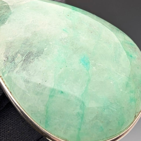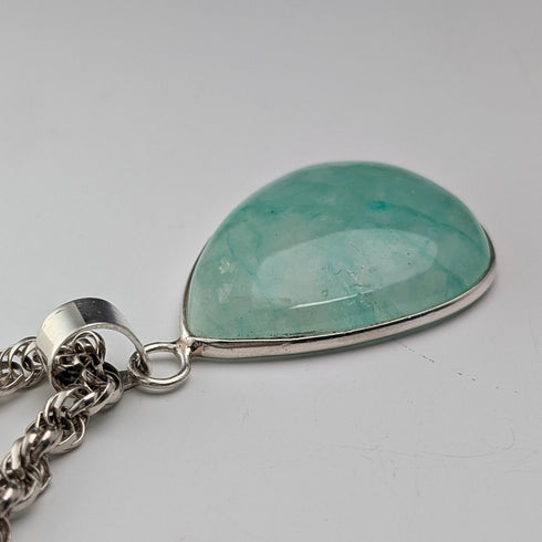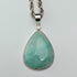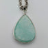 純銀製の土台に大きめの楕円形の薄いグリーンが美しい涙滴状のアマゾナイト(天河石)のペンダントです。