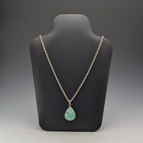 ヴィンテージ グリーンアマゾナイト&純銀 ペンダント 純銀ネックレス付き
