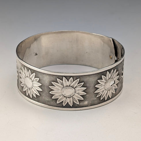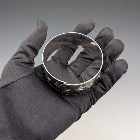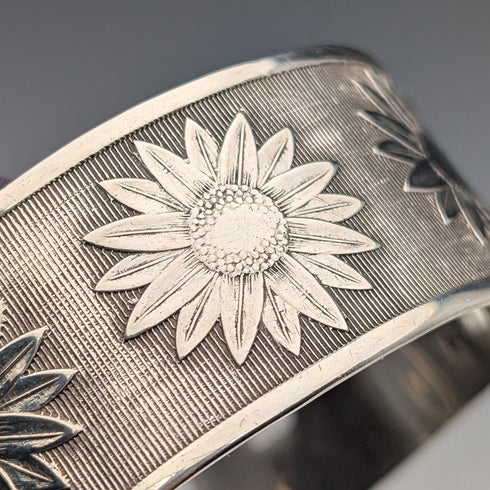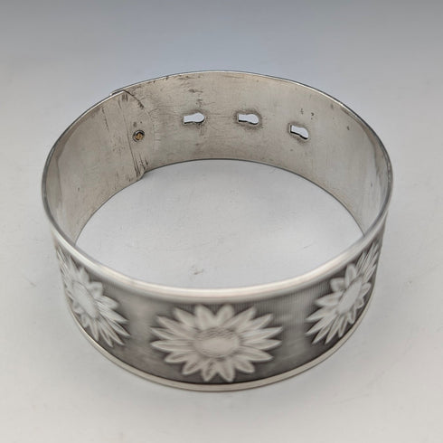 1945年 英国ヴィンテージ 純銀製 フラワー装飾 ブレスレット 50g Joseph Smith