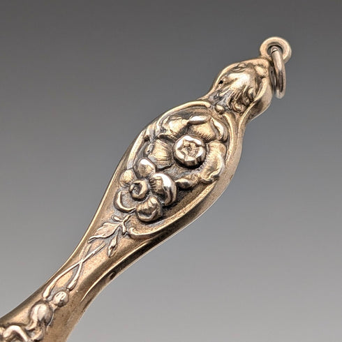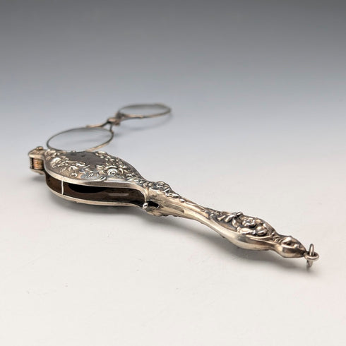 米国アンティーク 純銀製 ヴェルメイユ 細密装飾 携帯用折りたたみ式眼鏡 ロニエット