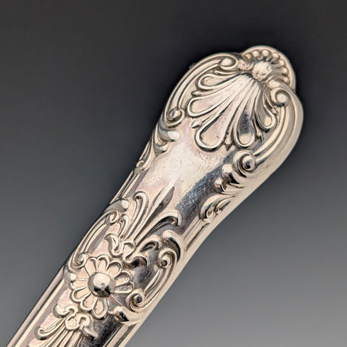 ハンドルは純銀製でアンティークらしいクイーンズパターンとなっています。