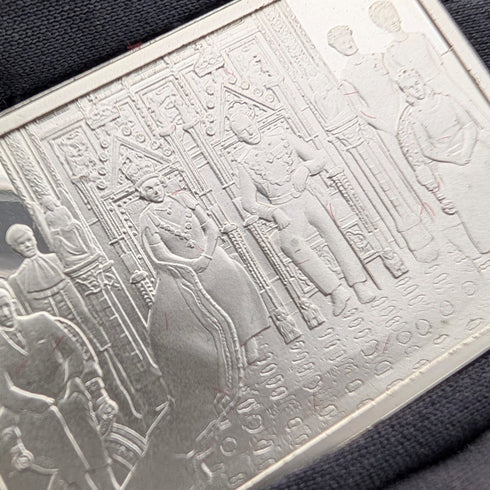 それぞれのインゴットには、エリザベス女王が参加した様々なイベントのシーンが、細密なレリーフ彫刻で表現されています。