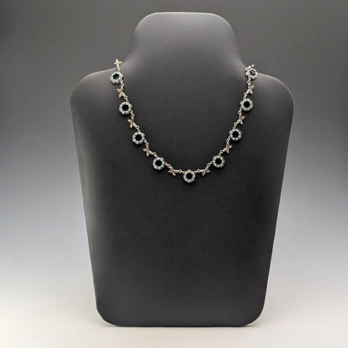 ヴィンテージ 純銀製 ターコイズガラス&マーカサイト装飾 ネックレス23g