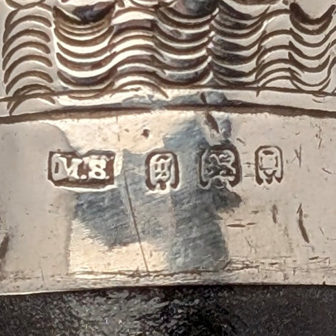 ・純銀装飾部分には英国資金鑑定所のホールマークがあります