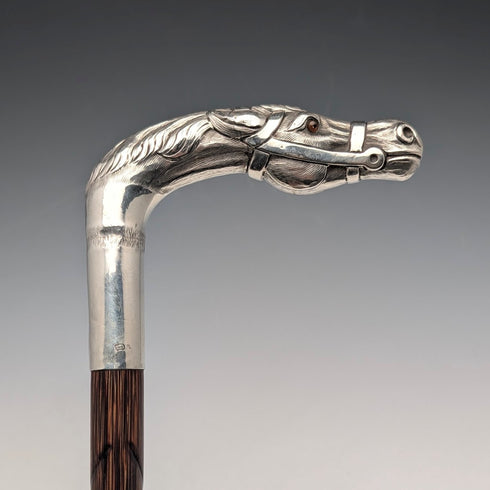 高級ステッキの代名詞である馬の頭をかたどった純銀製のハンドルとなっています。