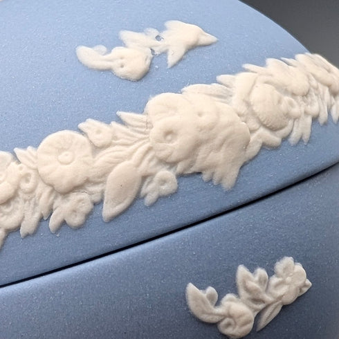 英国ヴィンテージ ウェッジウッド ジャスパーウェア製 卵型ボックス 小物入れ ペールブルー