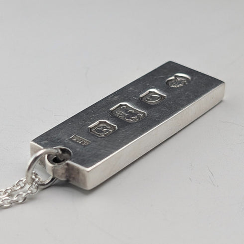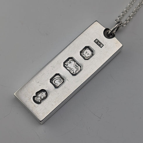 スターリングシルバー製の1トロイオンス インゴット型ペンダントです。