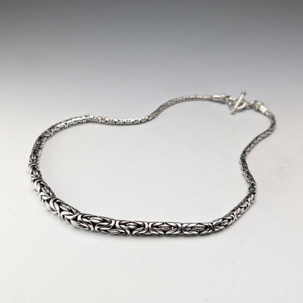 我們想向您介紹一款英國製造的純銀項鍊。這是英國DK公司生產的一條比較新的純銀項鍊,2007年生產。這是一種由跳環編織而成的複雜鏈條,稱為拜占庭鏈。此類型的中心處較厚。扣環是將 T 形桿插入環中的一種類型。我們希望這次千載難逢的邂逅對你來說將會是一次特別的體驗! 【健康)狀況】外觀:★★★★☆ 狀況良好,無明顯刮痕或污漬 功能:★★★★☆ 略有損壞,無大問題 - 由於年代久遠,有磨損和污垢,但沒有明顯的刮痕,並且狀況良好。 - 扣環上有英國銀質標誌。 *由於這是舊物品,因此存在因老化而產生的輕微刮痕和污漬。 *購買前請檢查照片並確保您是否理解。 【細節】製造商: DK製造年份:2007年(伯明罕)材質:純銀(925/1000)尺寸:總長46.5厘米重量:54克 *這是一個古董,沒有其他完全相同的物品。 ※如果您有任何疑問,請隨時詢問。