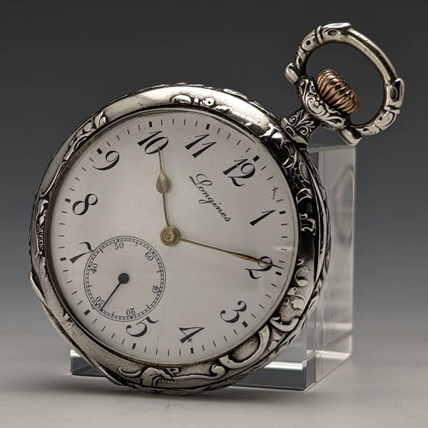 我們想介紹一下浪琴表的古董懷錶,這是一家成立於1832年、歷史悠久的老牌製造商。這是一款 1911 年左右的銀色雙面開面懷錶。錶背刻有細緻的新藝術風格植物圖案。這款手錶的錶殼非常漂亮,錶圈、側面和吊墜區域都有裝飾。大修歷史未知,但天平擺動良好,進展順利且充滿活力。 (說明影片) https://youtu.be/44Zaq6LZT7c 【健康)狀況】外觀:★★★★☆ 狀況良好,無明顯刮痕或污漬 特性:★★★★☆ 維護歷史未知,但工作狀態良好(每天相差 5 分鐘以內)・錶殼:隨著時間的推移,有些許磨損,但狀態良好,沒有明顯的刮痕或凹痕。・錶殼雕刻:後蓋和防塵蓋內側刻有瑞士900銀雕刻。・錶盤:5點鐘附近有一條細小的髮際線,但很難被注意到。・其他:擋風玻璃由礦物玻璃製成,無裂痕或碎片。・精度:使用平面計時儀測量時,每天約有 1 分鐘差異・動力儲存:從整個發條檢查至 35 小時*請注意,每日差異會根據發條的姿勢和上弦情況而有所不同,因此僅供參考。 *由於它很舊,我不知道零件更換或維修的歷史。 【細節】・品牌 浪琴表・製造年份:1911年左右・機芯機械・彈簧手動上鍊(Cal 18.79)・時間設定錶冠把手(吊墜套裝)・錶殼材質 硬幣銀 (900/1000)・錶殼直徑48毫米(不含錶冠)・錶殼厚度 13.5mm(含擋風玻璃)・重量 79g *由於這是古董物品,因此沒有其他物品完全相同。如果您有任何疑問,請隨時提問。