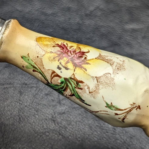 瓷柄上有一幅美麗的花卉畫。