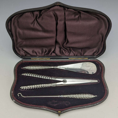 約 1892 年英國古董純銀手柄配件套裝帶盒