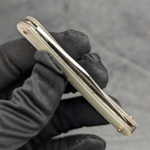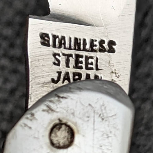 英國古董白珍珠貝殼柄不銹鋼刀片折疊筆刀