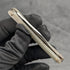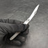 這是一款帶有珍珠母手柄和不銹鋼刀片的折疊型。