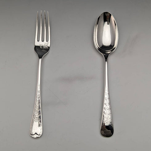 這是 1895 年左右的鍍銀勺子和叉子兩件套。