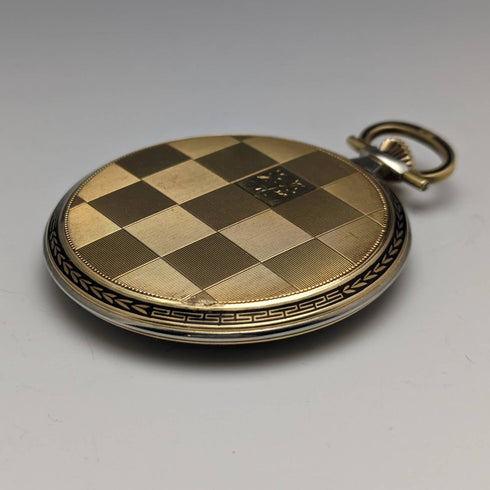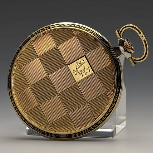 這是一款具有裝飾藝術風格設計、纖薄18k純金錶殼的懷錶。