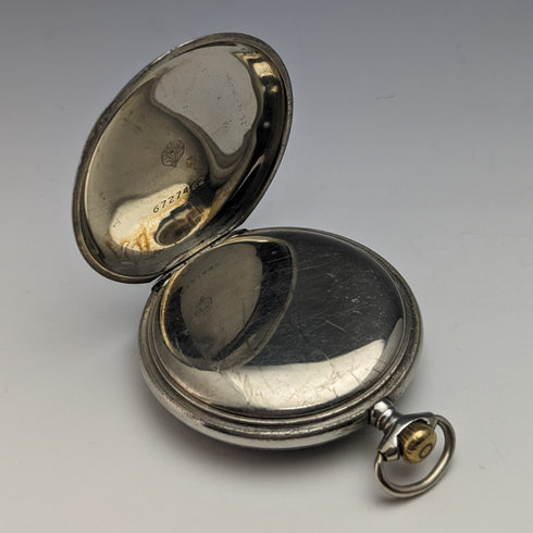 這是一款 1915 年左右製造的鍍銀錶殼的開放式懷錶。