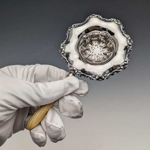 美國古董純銀木柄濾茶器 JF Fradley