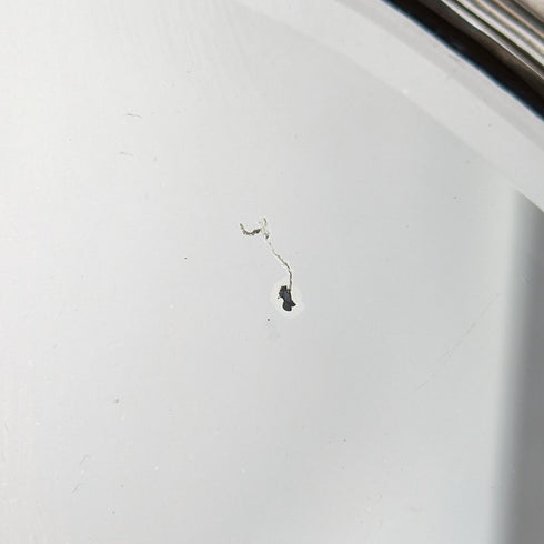 -鏡子有一處有黑色污點,但沒有裂痕或缺口。