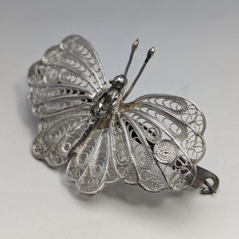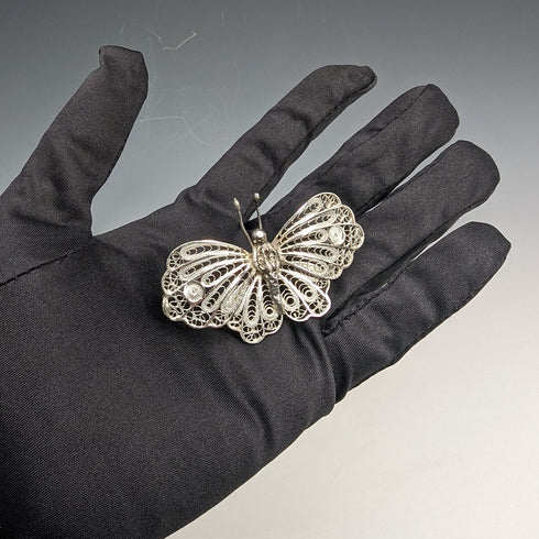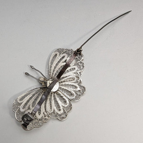這是一種用細銀絲製成的蝴蝶形胸針,稱為“花絲”。