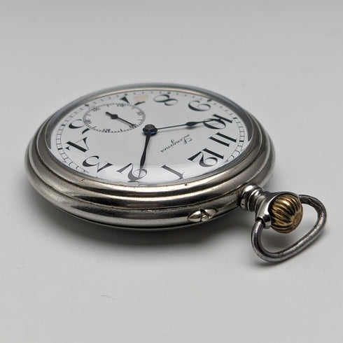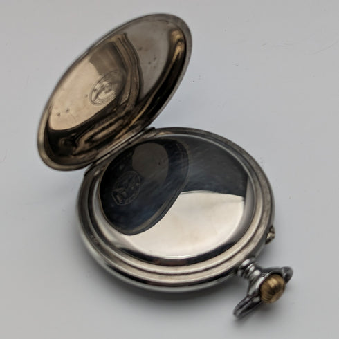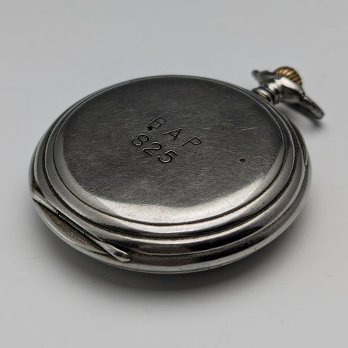這是一款 1912 年左右在鐵路上使用的懷錶,合金錶殼。