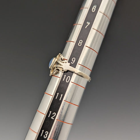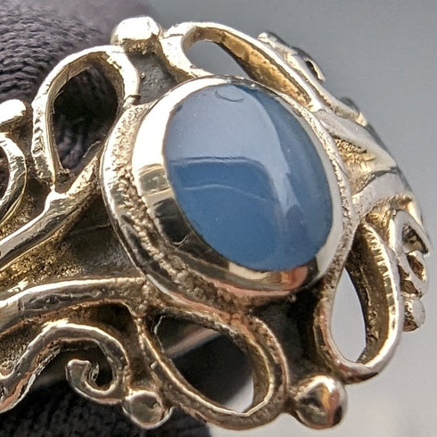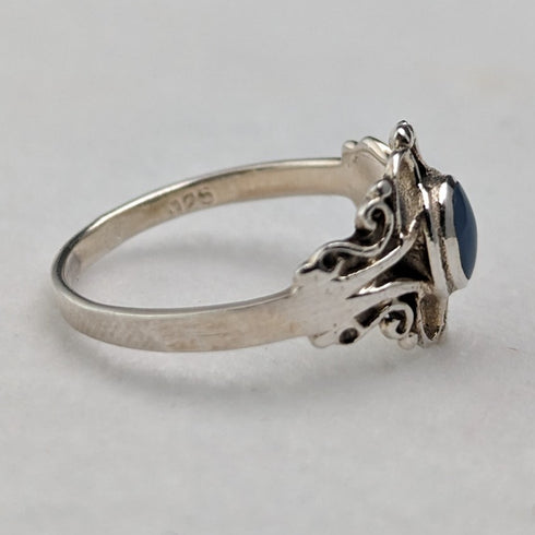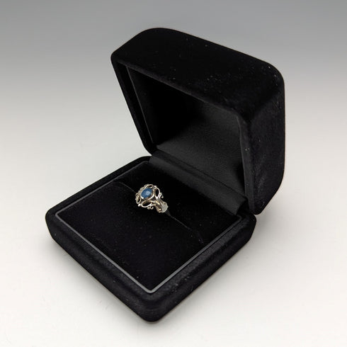 鑲有藍色寶石的純銀戒指。